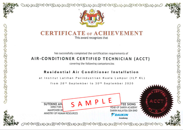 Tentatif Air-Conditioner Certified Technician (ACCT) – Kursus RA Installation